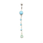 Dangle Belly Ring with Blue Flower design 14g Surgical Steel