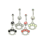 Dangle Brass Knuckles Belly Ring with Cz Gems 14G