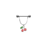 Surgical steel nipple shield with red gemmed cherry dangle.