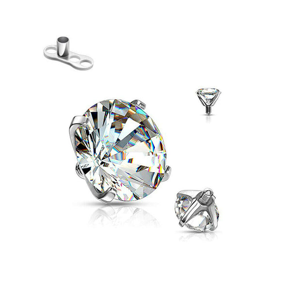 Dermal anchor Clear Round CZ Top Prong Setting with base Surgical Steel