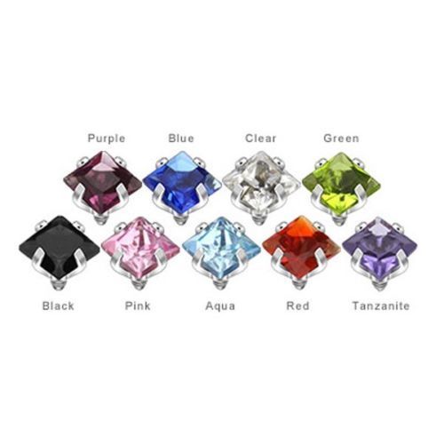 Dermal Piercing Tops - 9 or 18 Piece Prong Set Square Gem Internally Threaded 316LDescription Fits into a 14 gauge dermal anchor. The anchors are sold separatelyJewel colors are red,...