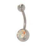 Double Jewel Belly Button Ring High Polish Surgical Steel DESCRIPTION This is a glamorous belly button ring with a 316L high polish surgical steel and dual Aurora Borealis opal gems...