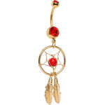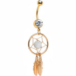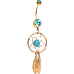 Dream Catcher Belly Ring Dangle Gold I.P. 14ga 316L Surgical Steel