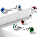 Eyeball Inlaid Surgical Steel Curved Barbell for Eyebrow and More 16ga