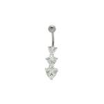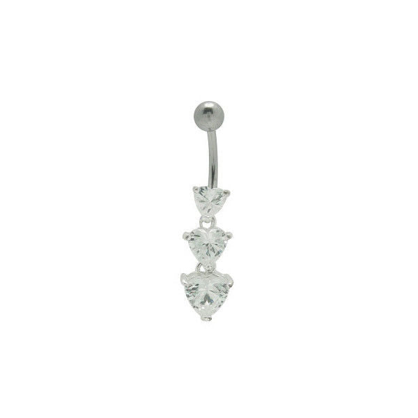 Heart CZ Navel Barbell Belly Button Ring Jewelry 14G Surgical Steel DESCRIPTION This is a wonderfully crafted 3 cz heart-shaped dangle navel barbell. The cz are shaped into hearts that...