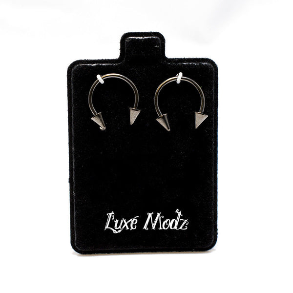 Horseshoe Ring 2pc Black Anodized Titanium Circular Barbell Rings W/ Spike 16G