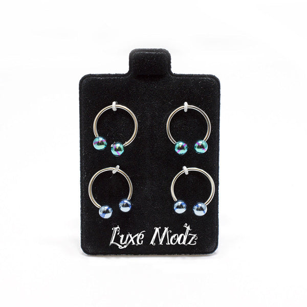 Horseshoe Ring Circular Barbell 4 Pack 18G Anodized Blue & Green Stripe Balls