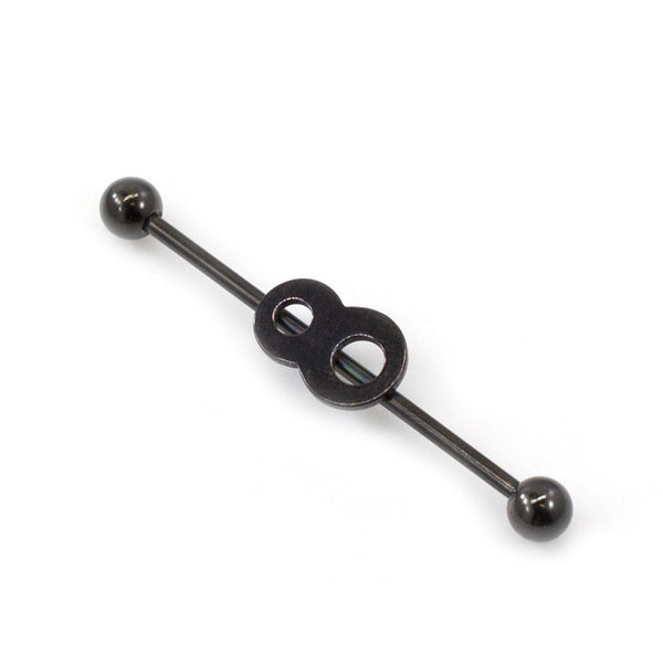 Industrial Barbell with 8 number 14G Black IP DESCRIPTION Industrial Barbell with 8 number 14G Black IP Measures: 14g, 38mm Length The number 8 is considering a lucky number Bring...