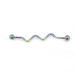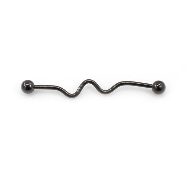 Industrial Barbell with curved bar design 14G DESCRIPTION Industrial Barbell with curved bar design 14G Measures: 14g, 38mm Length Spiral design barbell that can be used for ear industrial piercings...