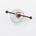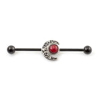 Industrial Barbell with Moon and Red Stone Design 14G 38mm Length