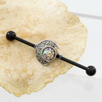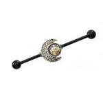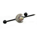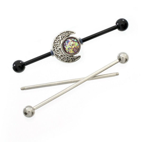 Industrial Barbell with Moon Design and Opalite Charm 2 extra bars included 14g