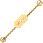 Industrial Cartilage Piercing 14G Barbell with Razor Blade Charm Description Features a Razor Blade charm Available in 4 colors: black, silver, gold and rainbow Ion-plated for durability and long-lasting color...