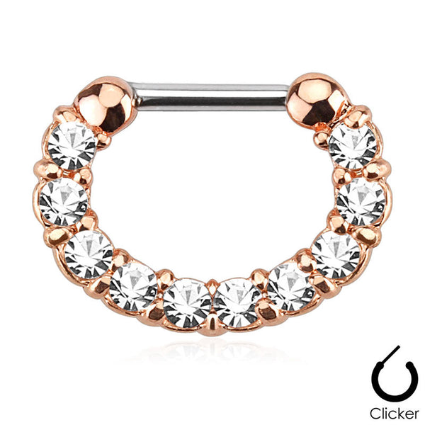 Ion Plated Rose Gold 16ga Septum Clicker with CZ Gems