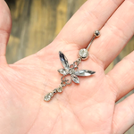 Large CZ Butterfly Dangle Navel Belly Ring Surgical Steel 14g Sold individually