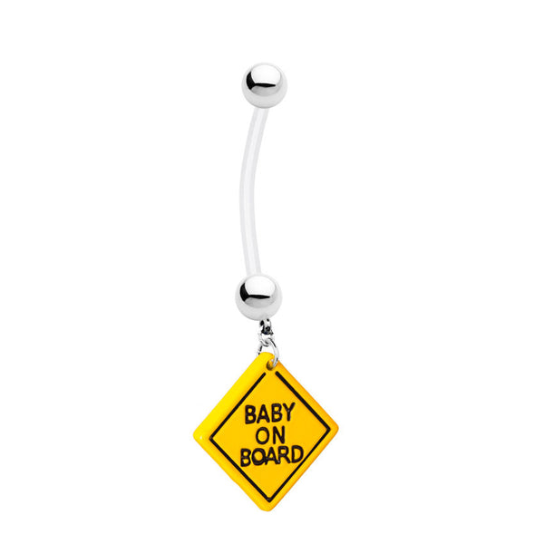 Maternity Belly Ring Baby on Board Dangle - 14ga Flexible Pregnancy Belly Ring