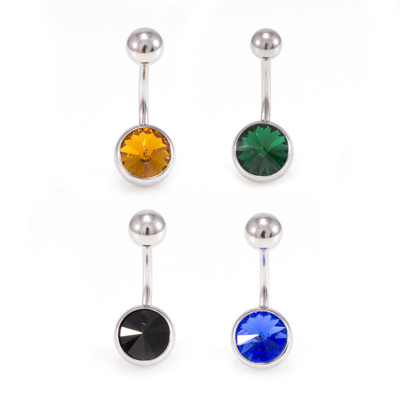 Package of 4 Belly Button Rings Navel Piercing with Jewels 14g