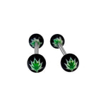 Pair of Tongue Nipple Barbells Acrylic Pot Leaf Design Surgical Steel 14 Gauge
