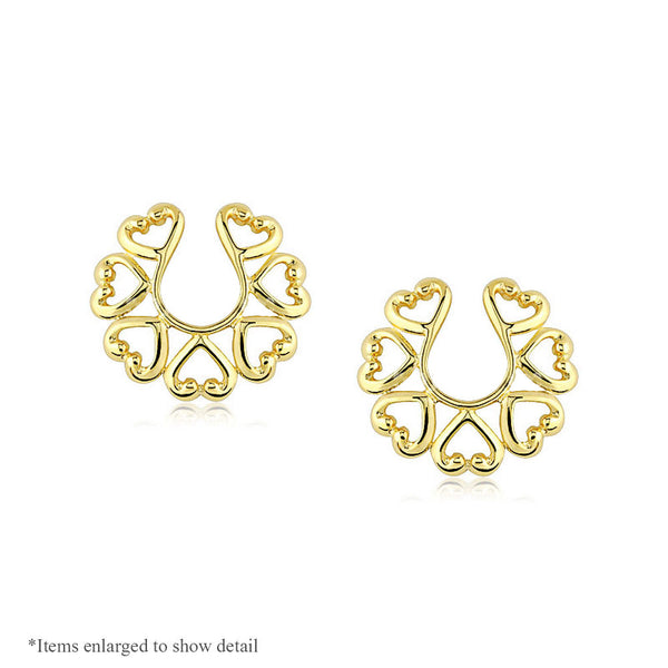 Pair of Vintage Hearts 14 Karat Gold Plated Clip-On Nipple Rings
