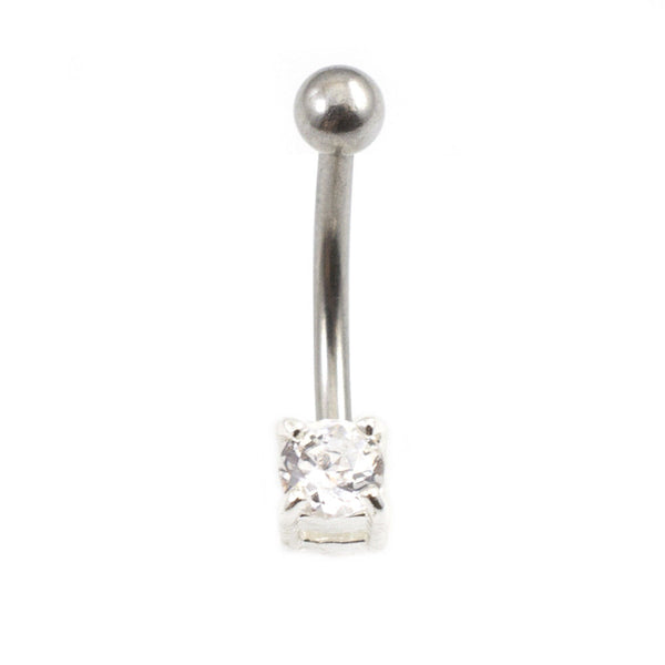 Petite Belly Button Ring 16G with Clear Cubic Zirconia Gem