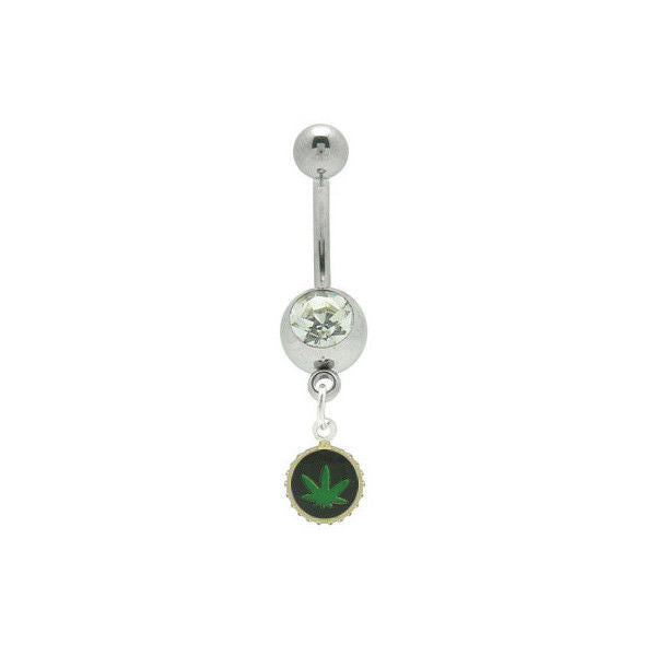 Pot Leaf Jeweled Belly Ring Navel Body Jewelry 14G DESCRIPTION This is an awesome Pot Leaf Dangling Jeweled Navel Ring. This navel has a jeweled bottom bead and from it...