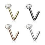 20G 18G L Shaped Nose Stud 316L Surgical Steel Prong Set Clear Heart CZ Top L Bend Nose Ring Piercing Jewelry 1/4" 6mm - Sold Individually Gauge - 20 Gauge...