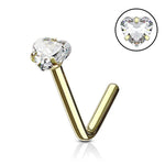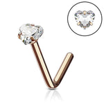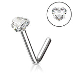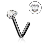 PVD Crystal CZ Heart L Shaped Nose Stud 6mm