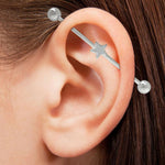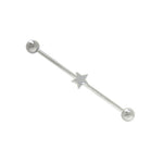 This is an amazing 316L surgical steel Silver Star industrial barbell with two 5mm externally threaded end beads. The size is 14 gauge and length 38mm - 1.5 inch. The entire piece is nickel free. Item sold individually.
