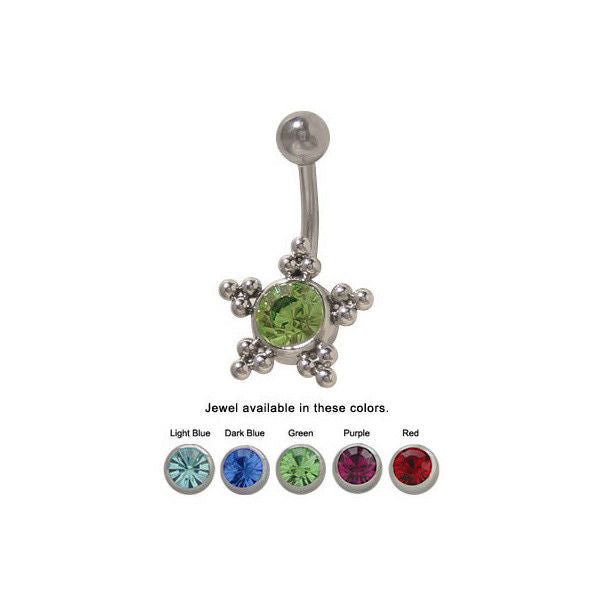Star Belly Button Ring with Jewel 14G Navel Jewelry Surgical Steel DESCRIPTION This is a unique star design belly button ring created with a 316L high grade surgical steel shaft...