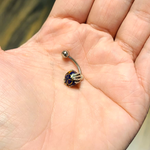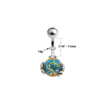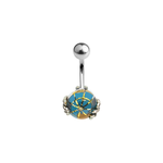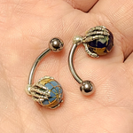 Incredibly Detailed Sterling Silver Skeleton Hands Holding Globe Belly Navel Ring Surgical Steel 14g -Sold individually Externally threaded 7/16" - 11mm shaft 5mm top ball 10mm bottom Color Options: Green...