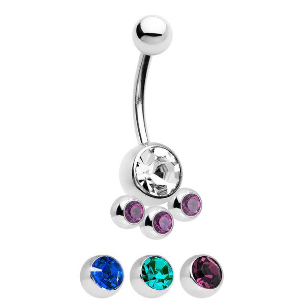 Surgical Steel Belly Button Ring with 3 CZ Jewel Design