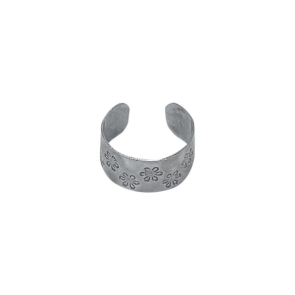 Toe ring Adjustable silver plated flower engraved design Barefoot jewelry