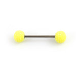 Tongue Barbell with Acrylic Textured Designed Balls 14ga 5/8 inches -15mm DESCRIPTION Tongue Barbell with Acrylic Textured Designed Balls 14ga 5/8 inches -15mm Measures: Beadsize is 5mm,Lenght- 5/8 inches 15...