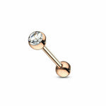 Tongue Barbell with Crystal Set Rose Gold IP Over Surgical Steel 14ga