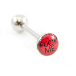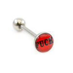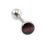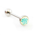 Tongue Barbell with Naughty Logo 14g Surgical Steel