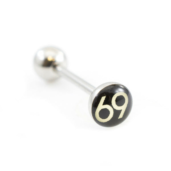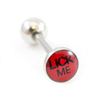 Tongue Barbell with Naughty Logo 14g Description Measures: 14g(1.6 mm), bottom ball: 6mm, Logo size: 7mm. Smooth Surface and easy to use, made of surgical steel Show off your tongue...