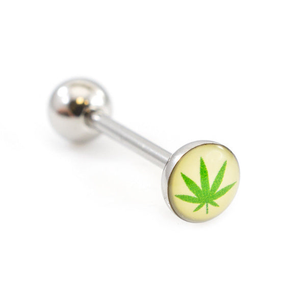 Tongue Barbell with Pot Leaf Design design 14g Description Tongue Barbell with Pot Leaf Design design 14g Measures: 14g(1.6 mm), bottom ball: 6mm, Logo size: 7mm, 15mm Length Smooth Surface...