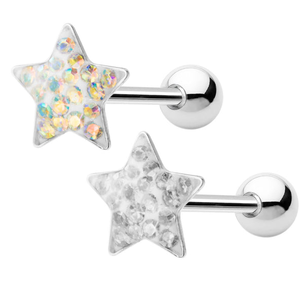 Tongue Piercing Barbell - Sold as a Pair! - Star Ferido-Set CZ Gems - 14ga 316L