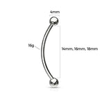 Tongue Piercing snake Eyes 16g 14-16-18mm Curved Barbell with 4mm Solid balls Pack of 2