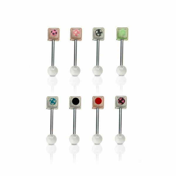 Tongue Surgical Steel Barbells with Acrylic Transparent Ball in Cube Assorted Co